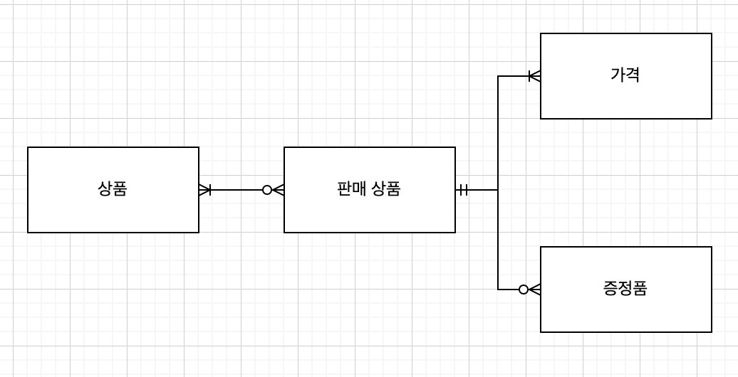 위의 예로 인해 나는 "상품" 과 "판매 상품" 으로 구분했다. 그리고 상품에는 재고라는 특성이 존재하며, "1개의 상품"을 "N개의 판매 상품" 과 연동할 수 있다. 때문에 모든 "판매 상품" 에는 "상품" 들에 대한 재고도 같이 연동되어야 한다. 또한, 가격은 항상 유동적으로 변경 가능하기에 "상품" 에 대한 "가격" 이 아닌 "판매 상품" 에 대한 가격으로 설정할 수 있도록 했으며 했다.